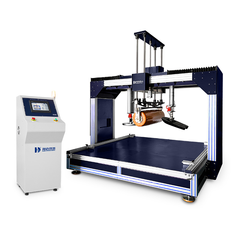 本機(jī)適用適用于強(qiáng)力彈簧床墊、普通彈簧床墊、泡沫床墊、棕纖維彈性床墊的綜合力學(xué)測試。模擬人類睡眠中不斷的翻滾而設(shè)計(jì)的機(jī)器,采用一個(gè)滾動(dòng)式加載模塊水平放置在床墊規(guī)定的加載部位,以一定頻率滾動(dòng),對床墊進(jìn)行往復(fù)加載,以檢驗(yàn)床墊對長期重復(fù)性滾動(dòng)載荷的承受能力。其中還配備了包括測高、軟硬度、滾動(dòng)疲勞的測試;符合國家、EN、ASTM(選購)等多個(gè)測試標(biāo)準(zhǔn)要求。