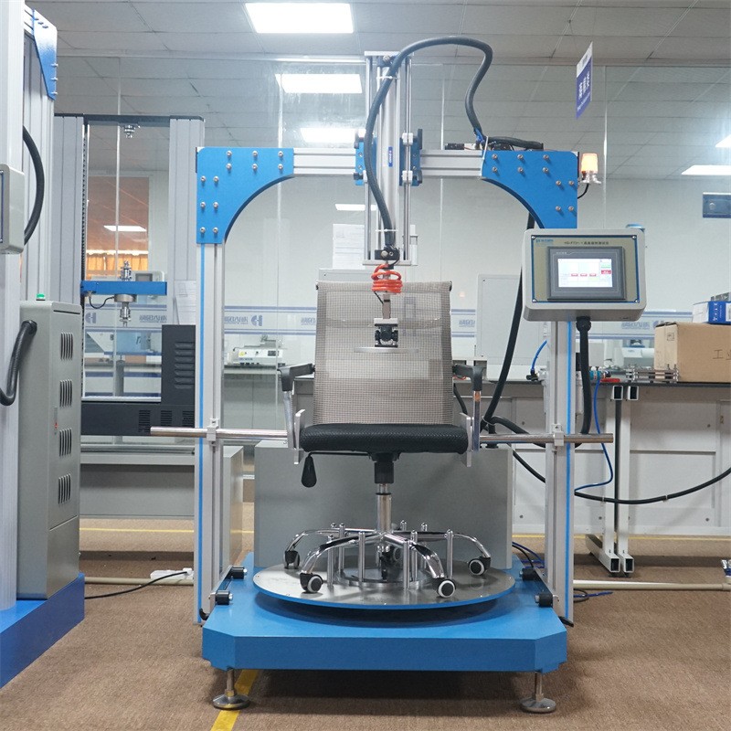 椅子旋轉試驗儀是一種專門用于評估帶腳輪或椅輪的辦公椅在前后移動過程中腳輪及椅框的疲勞壓力和磨損能力的測試設備。該試驗儀通過模擬辦公椅的正常使用環境,評估腳輪的耐磨壽命以及椅框的結構強度。