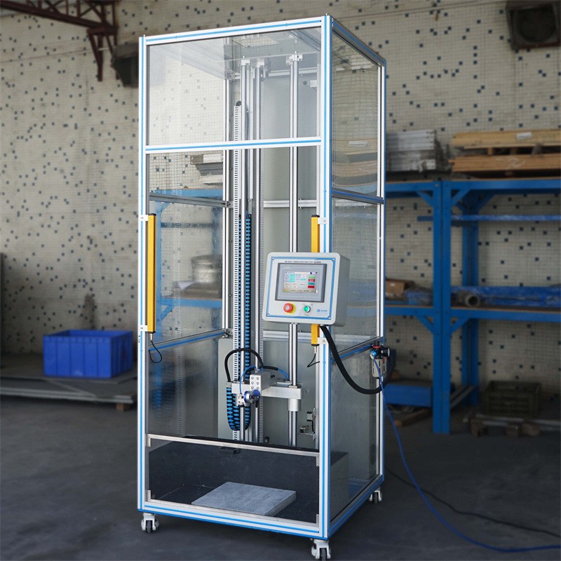 •本機采用電動組件來進行試驗高度的調(diào)整,定位快速且精確。用戶可以通過觸摸屏設(shè)置所需的跌落高度,設(shè)備會自動上升至設(shè)定的高度,操作方便,大大提高了測試效率。