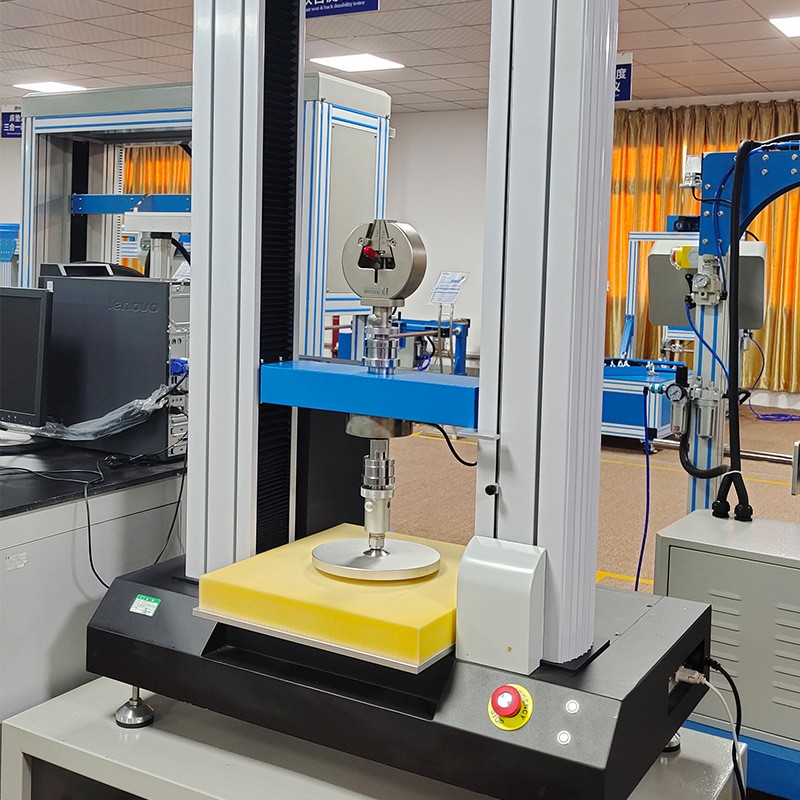 在進行壓陷硬度測試時,首先將待測樣品放置于上、下壓盤之間。根據國家標準的要求,可以選擇A法、B法或C法中的任意一種方法進行測試。測試過程中,上壓盤以預定的速度向下移動,壓縮樣品至規定的尺寸。荷重傳感器會實時感應到施加在樣品上的壓力,并將這些數據反饋給計算機系統。通過計算機界面,操作人員可以清晰地查看和記錄測試過程中的各項數據結果,從而準確測定海綿或泡沫材料的壓陷硬度。